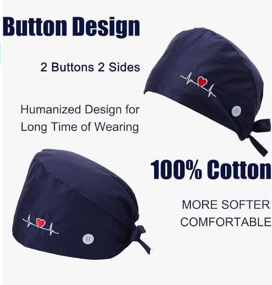Comodos y exclusivos gorros para medicos, enfermeras, personal de salud. Con capa interna de textil absorbente que retiene el sudor, diseño unisex.