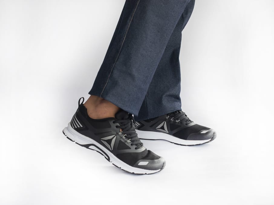 Runshoes unisex, marca Reebook original, color negro con detalles gris.